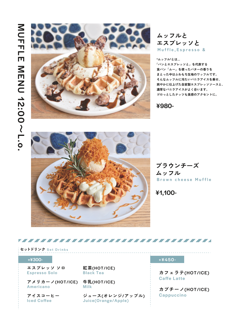 After noon, the restaurant’s Muffle Menu (starting at 12:00 PM) introduces the Brown Cheese Muffle, which provides a unique twist with its rich, savory brown cheese, offering an unforgettable flavor profile.