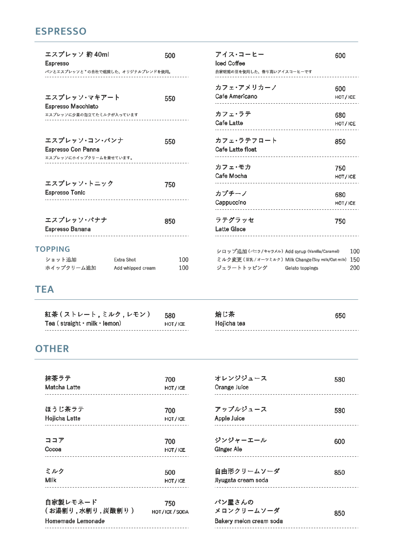 With these thoughtfully crafted options, Bread, Espresso & Jiyugata promises a well-rounded menu that can satisfy all your cravings, whether you're looking for a fulfilling breakfast, a midday snack, or a delightful dessert to end your visit.
